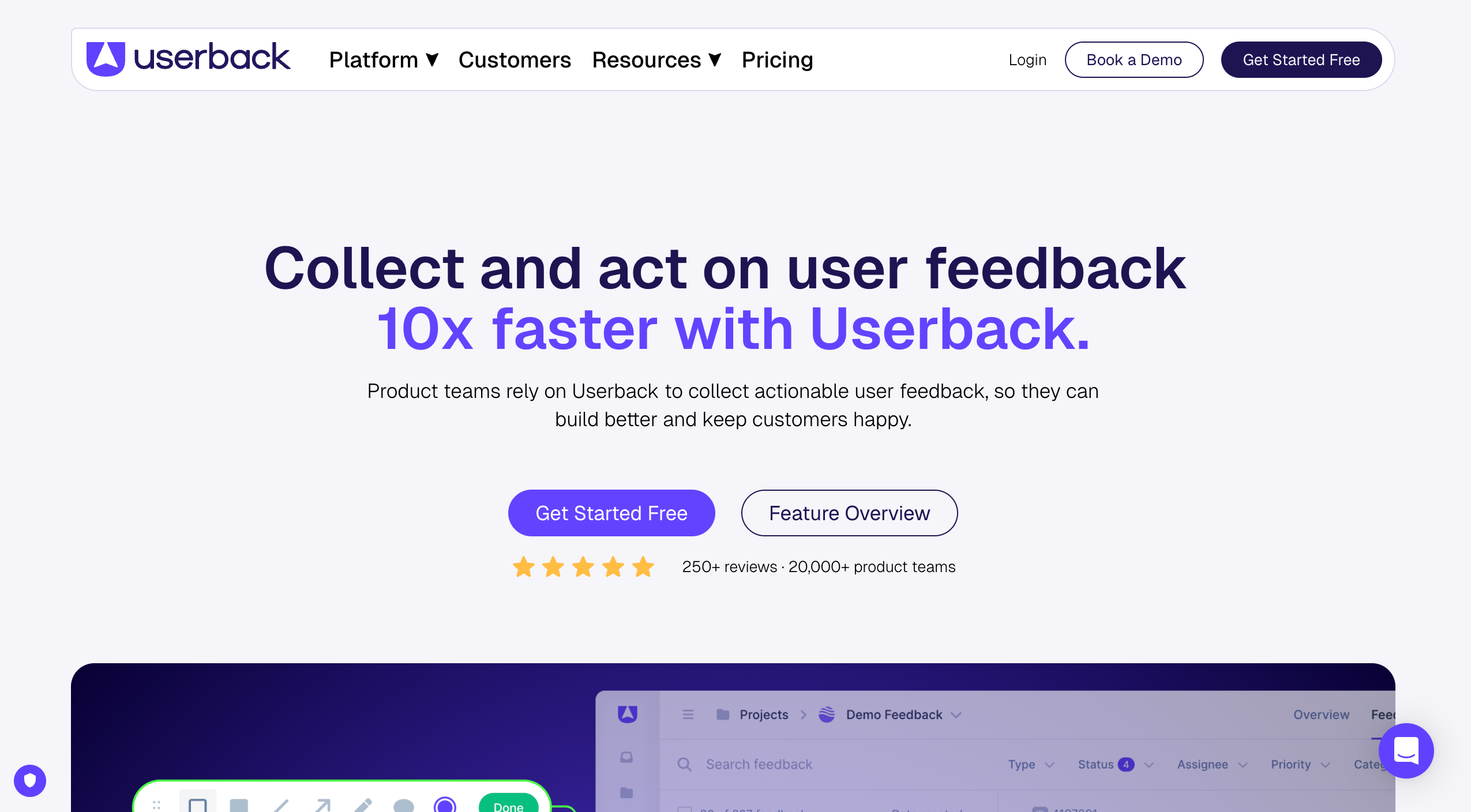 User feedback software platforms allow teams to gather direct input from users on live websites and applications through on-page annotations, visual comments, surveys, etc; and then centralize that feedback into actionable tasks for development and marketing teams. These platforms are designed specifically for user feedback collection, providing specialized features to manage, analyze, and prioritize user insights.